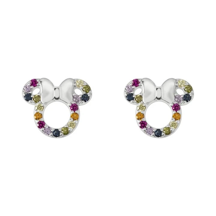 Disney Silver Rainbow Cubic Zirconia Minnie Mouse Stud Earrings - F6756
