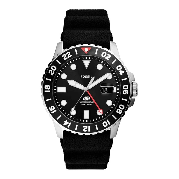 Fossil FS6036 Blue GMT Black Silicone Strap Watch - W10335