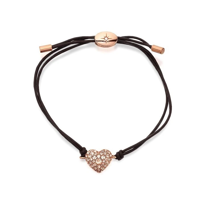 Fossil JF00290791 Rose Ionic Finish Crystal Heart And Brown Leather Bracelet - J4958