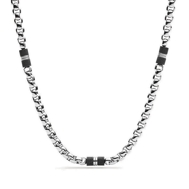 Fossil JF03314040 Stainless Steel Black Marble Necklace - A97119