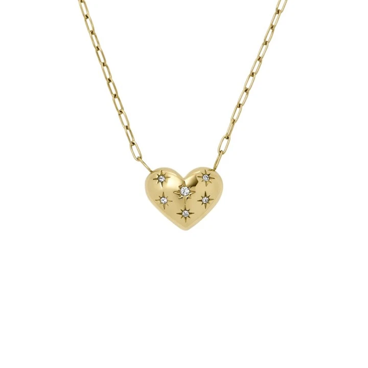 Fossil JF04856710 Yellow IP Stone Set Heart Necklace - J49371