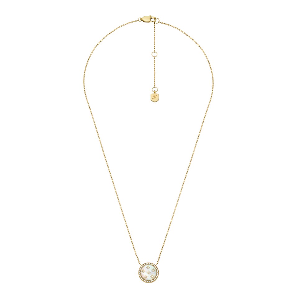 Fossil JF04865710 Yellow Tone Mother Of Pearl And CZ Necklace - J49377