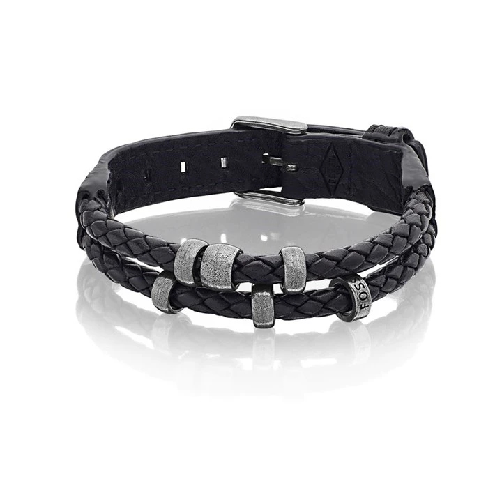 Fossil JF85460040 Black Leather And Antique Steel Bracelet - A9721