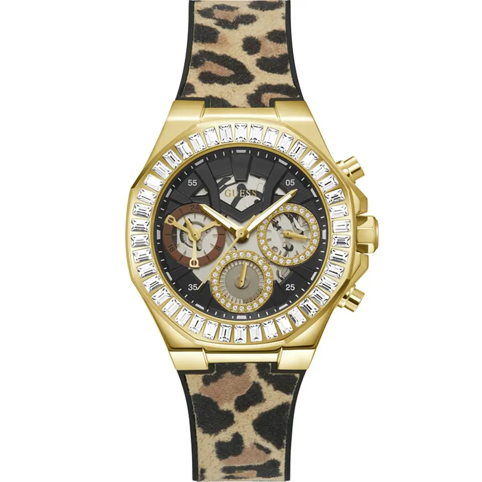 GUESS GW0463L1 Rapture Gold Plated Leopard Strap Watch - W96285