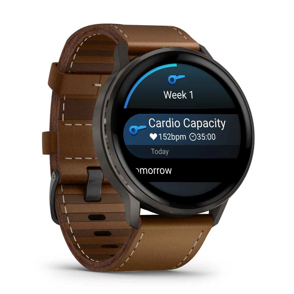 Garmin Venu 4 010-03014-03 Brown Leather Strap GPS Smartwatch - W47378