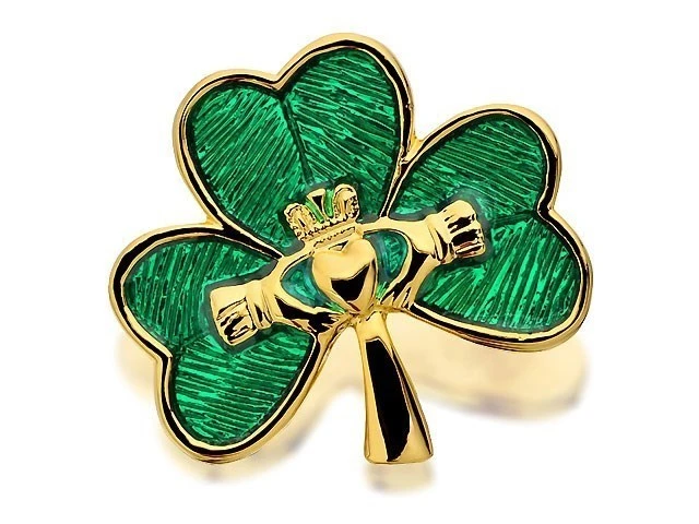 Gold Plated Shamrock And Claddagh Brooch - J6755