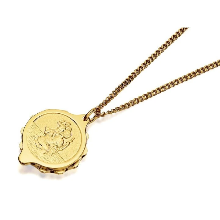 Gold Plated St. Christopher SOS Talisman Necklace - F3001