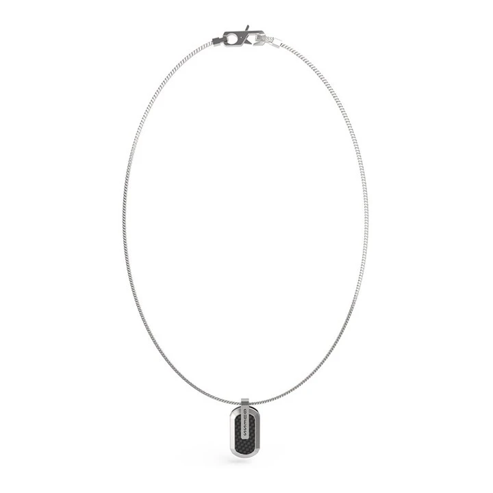 Guess UMN04045STBK Stainless Steel And Black Carbon Fibre Tag Necklace - A9321