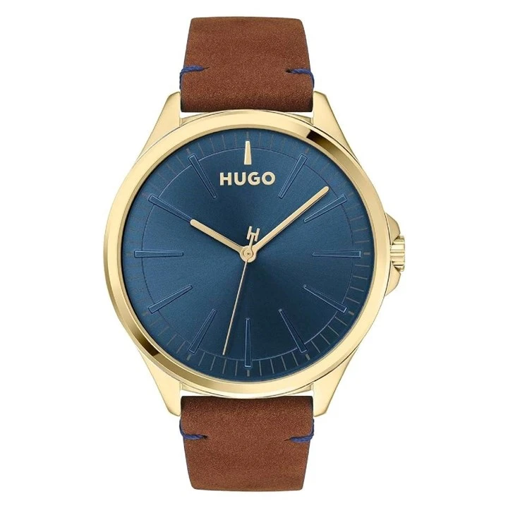 HUGO 1530134 Smash Gold Plated Brown Leather Strap Watch - W45251