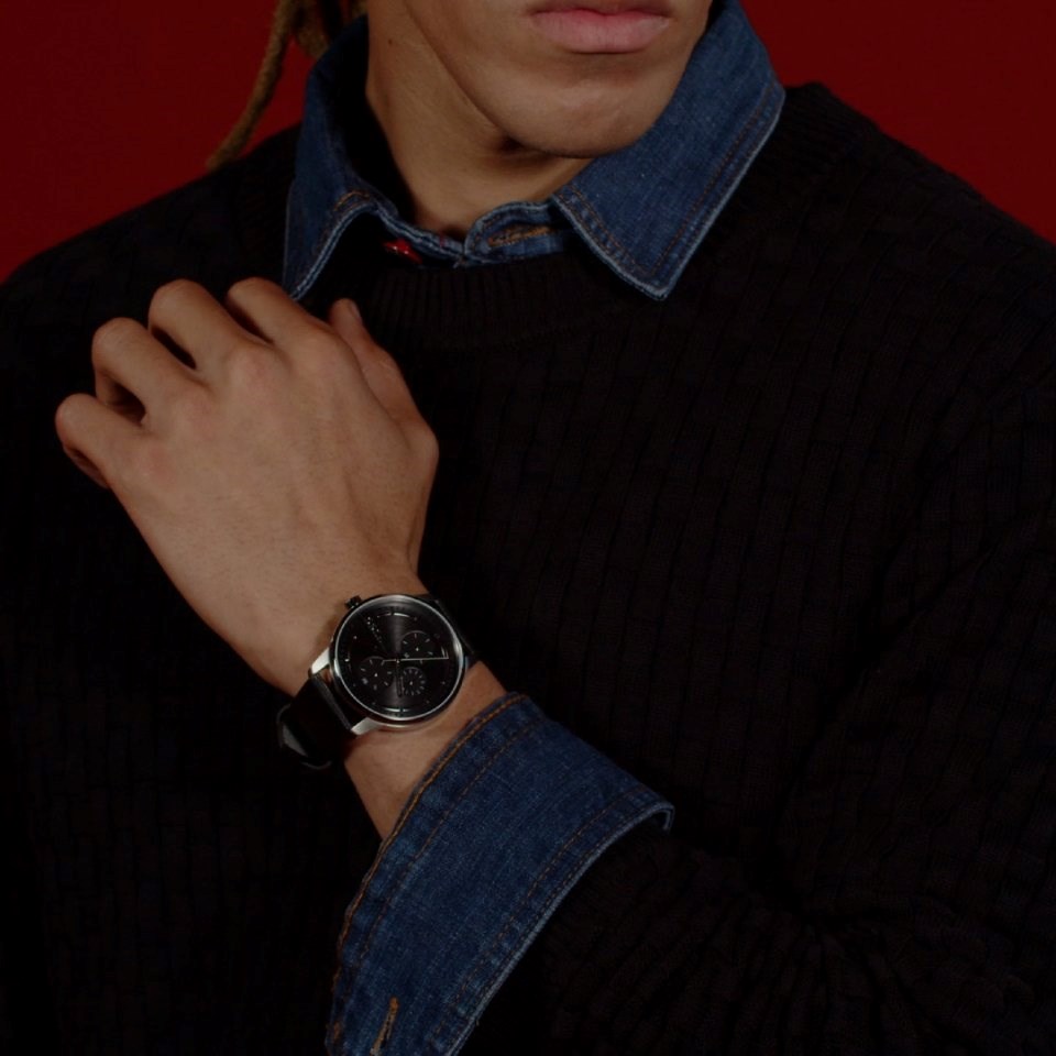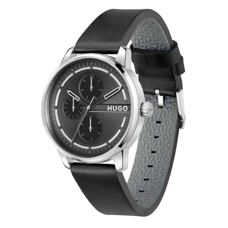HUGO 1530366 Stamp Multi Black Leather Strap Watch - W45420
