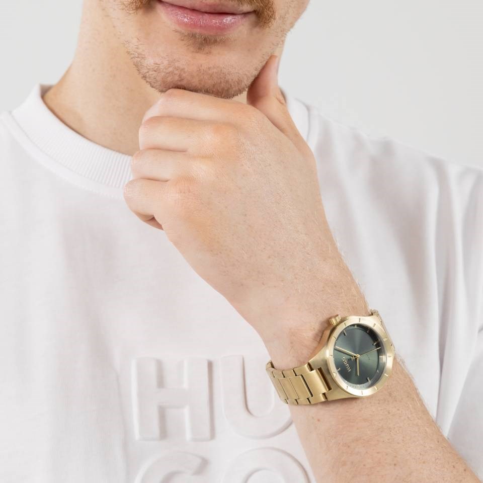 HUGO 1530449 Lit Gold Tone Green Dial Bracelet Watch - W45454