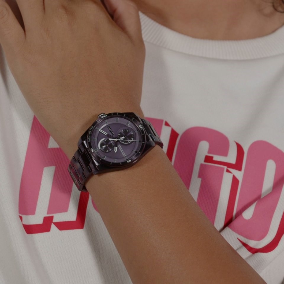 HUGO 1540170 Fast For Her Purple IP Multifunction Bracelet Watch - W45424