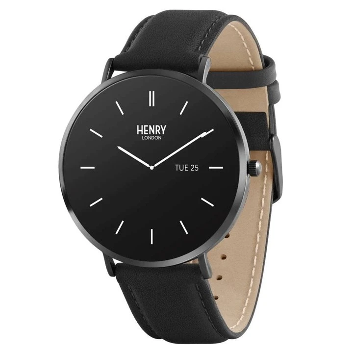Henry London HLS65-0005 AMOLED Black Leather Strap Smartwatch - W47281