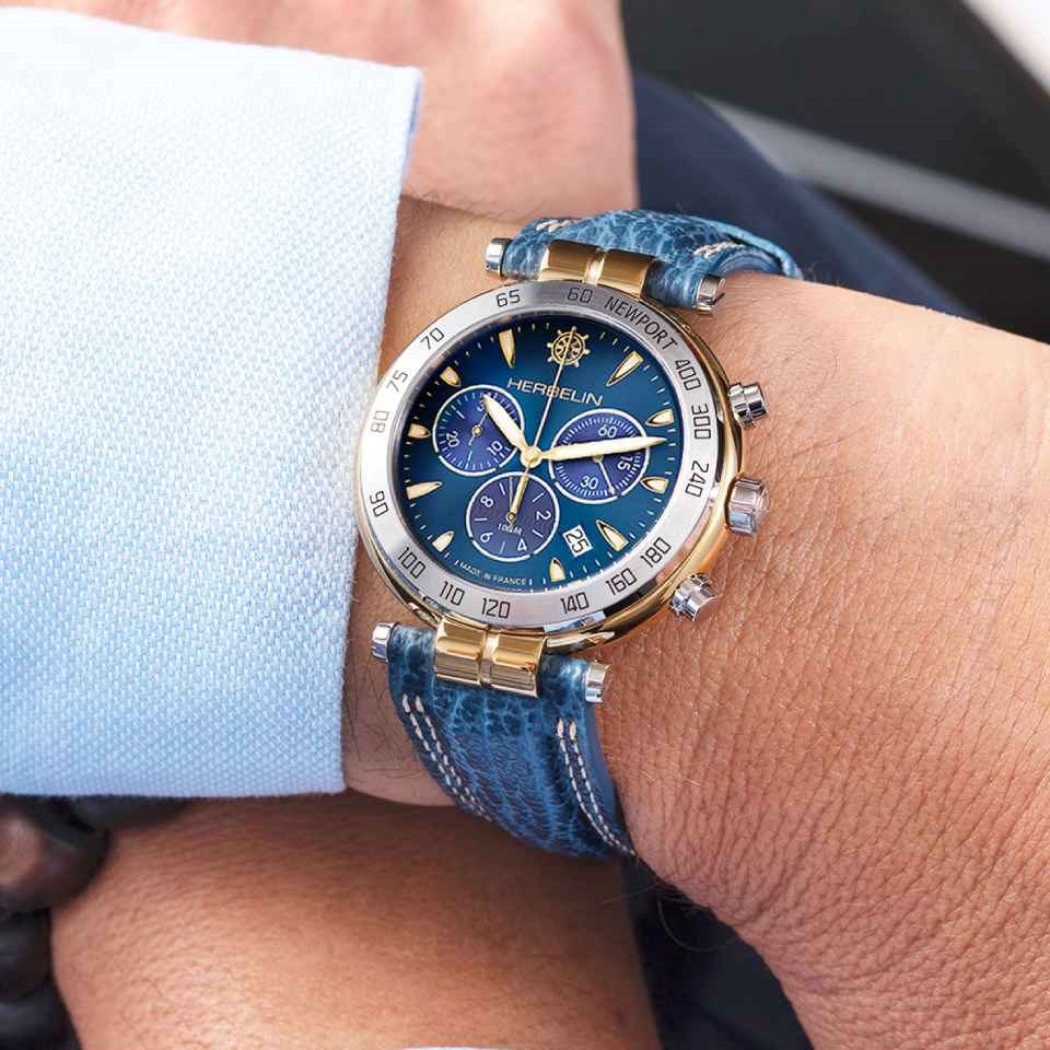 Herbelin 37654T35 Newport Originals Chronograph Blue Leather Strap Watch - W03132