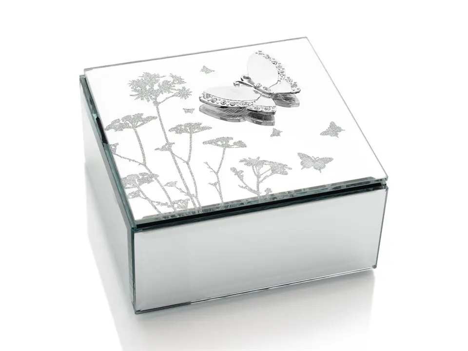 Hestia Butterfly And Flowers Glass Trinket Box - P65203