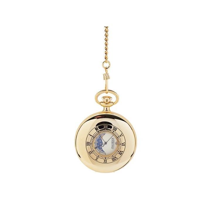 Jean Pierre G300P Gold Plated Half Hunter Moon Phase Pocket Watch And Chain - W2386