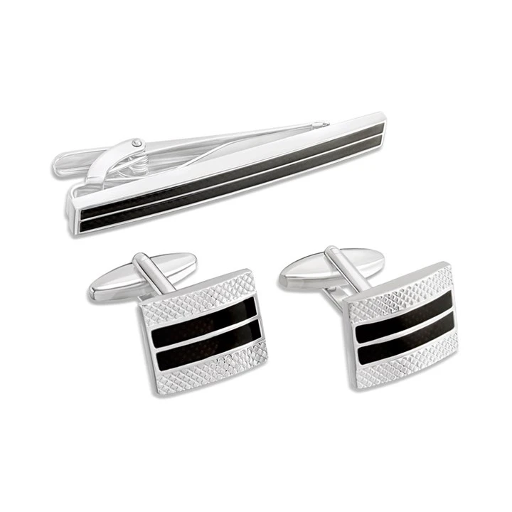 Joseph & George Black Striped Cufflinks And Tie Slide Set - A3007