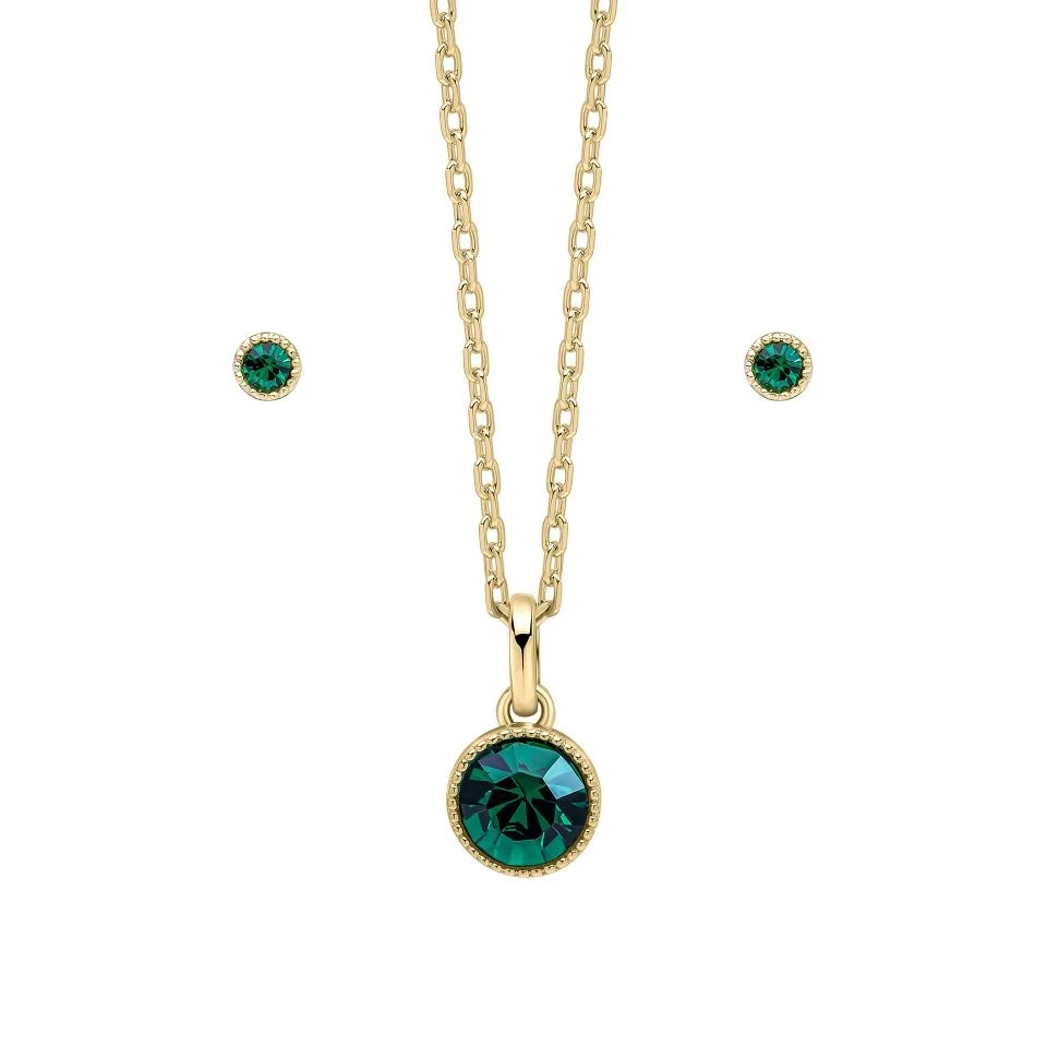 Laura Ashley Stippled Green Crystal Pendant And Earring Set - J4314