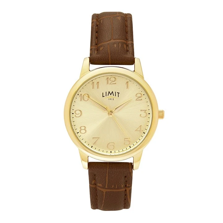 Limit 50060 Gold Tone Brown PU Strap Watch - W77253