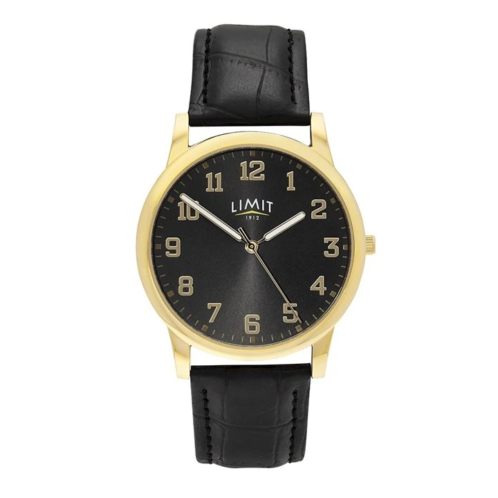 Limit 50064 Gold Tone Black PU Strap Watch - W77257