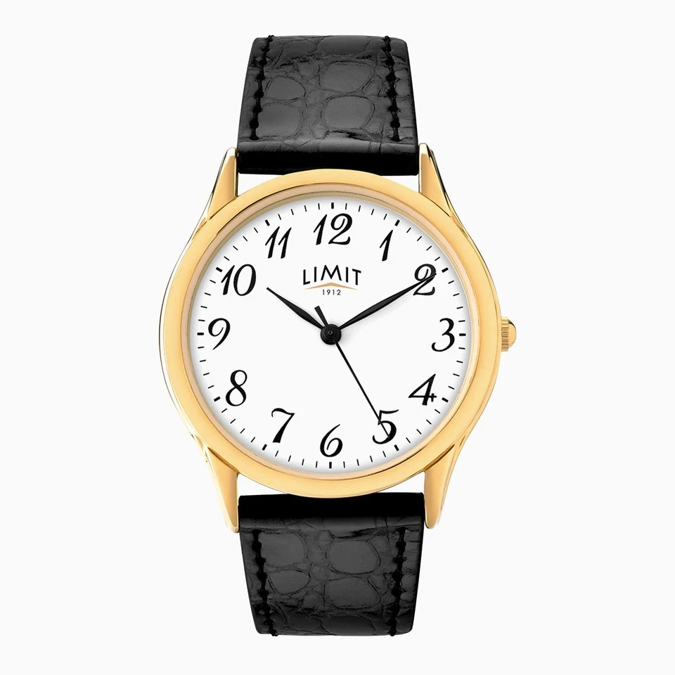 Limit 5066.01 Gold Plated Black Leather Strap Watch - W7734