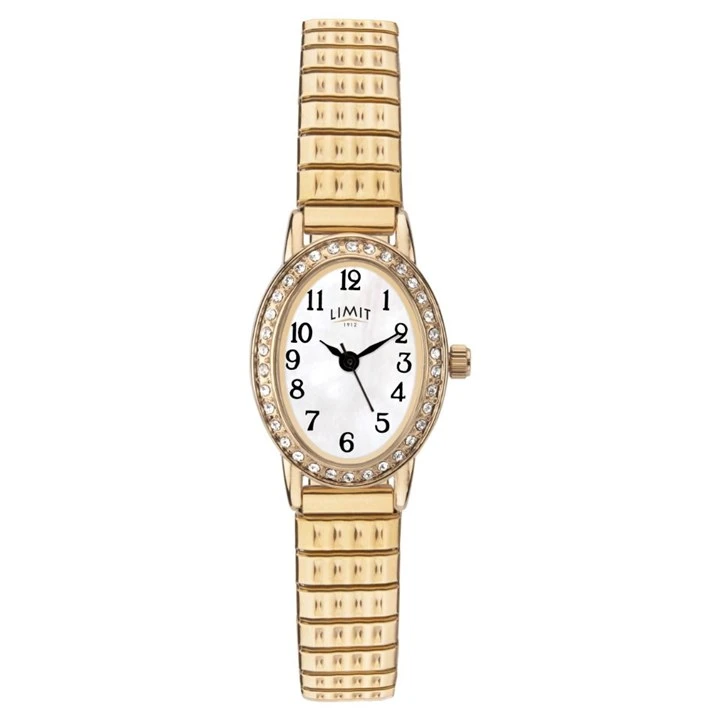 Limit 6030 Gold Tone Stone Set Expanding Bracelet Watch - W7772