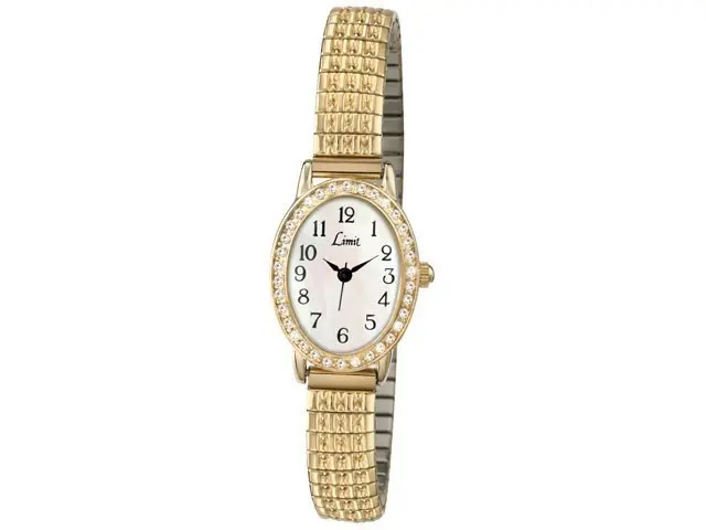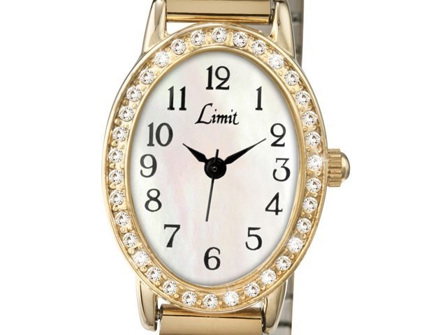 Limit 6030.01 Gold Plated Stone Set Expanding Bracelet Watch - W7772