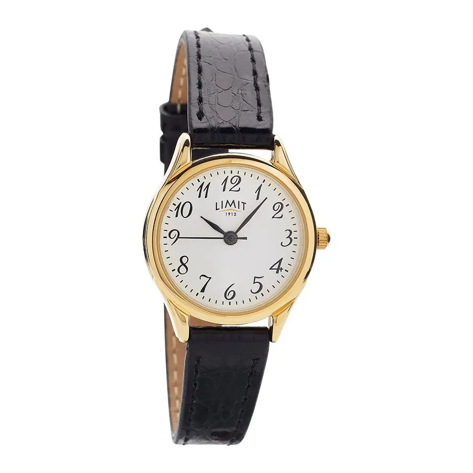 Limit 6141.01 Gold Plated Black Leather Strap Watch - W7720