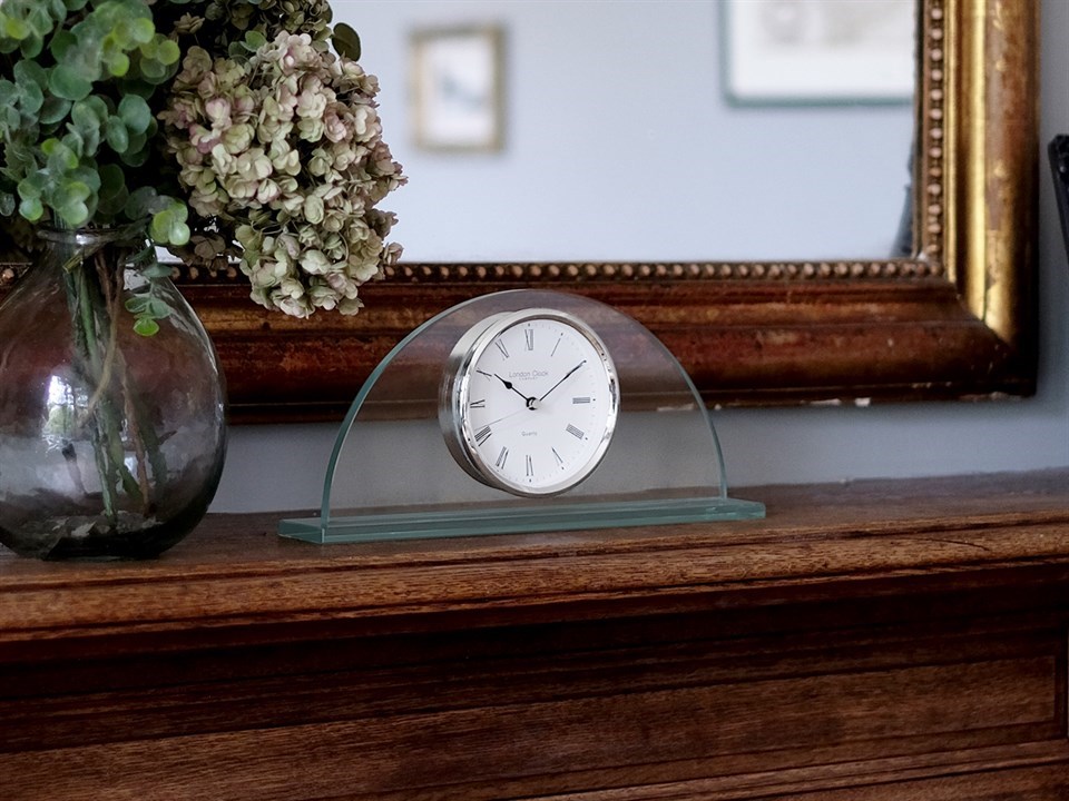 London Clock Half Moon Glass Mantel Clock - C1273