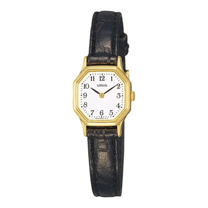 Lorus RPG40BX8 Gold Plated Octagonal Dial Black Leather Strap Watch - W5806