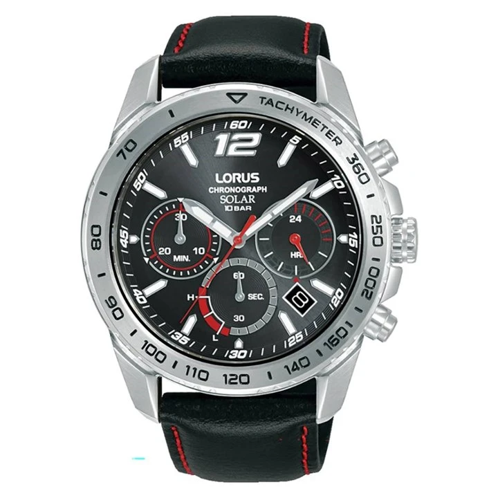Lorus RZ515AX9 Solar Chronograph Black Leather Strap Watch - W16299