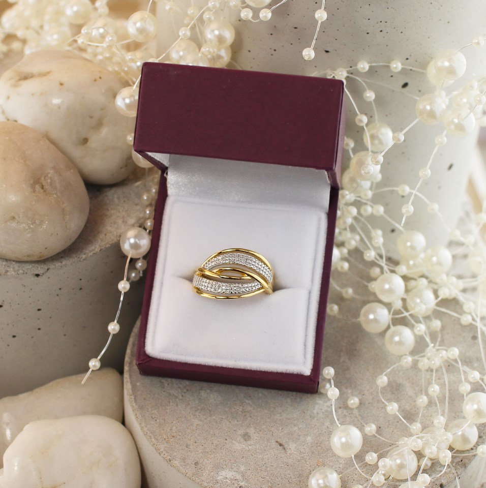 My Diamonds Gold Plated Silver Diamond Crossover Band Ring - 8pts - D99158