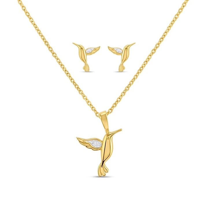 My Diamonds Gold Plated Silver Diamond-Set Humming Bird Pendant And Earring Set - D99252