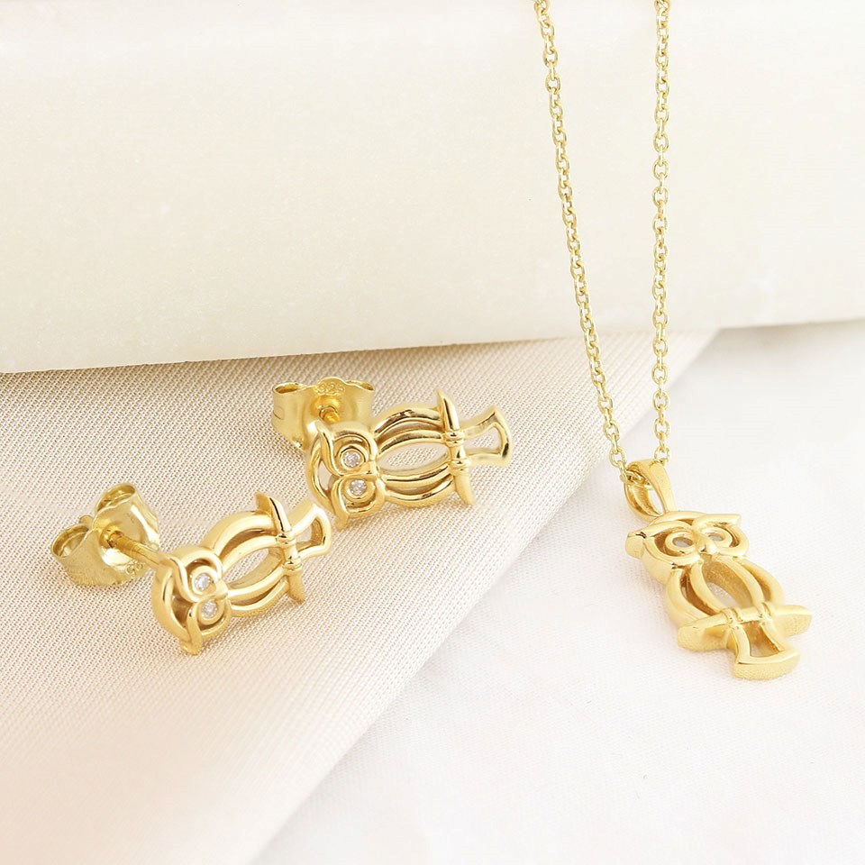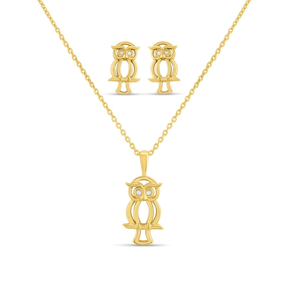 My Diamonds Gold Plated Silver Diamond-Set Owl Gift-Set - D99248