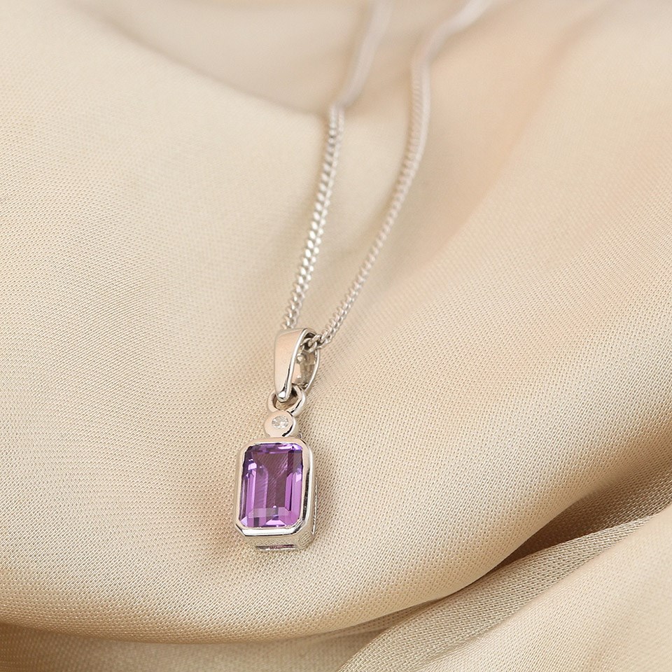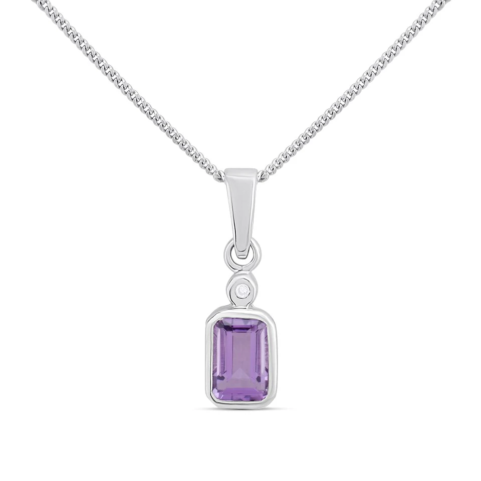 My Diamonds Silver Amethyst And Diamond Rub-Over Necklace - D99288