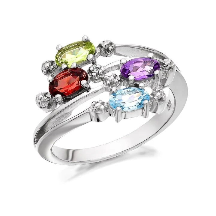 My Diamonds Silver Blue Topaz, Amethyst, Garnet, Peridot And Diamond Ring - D9053