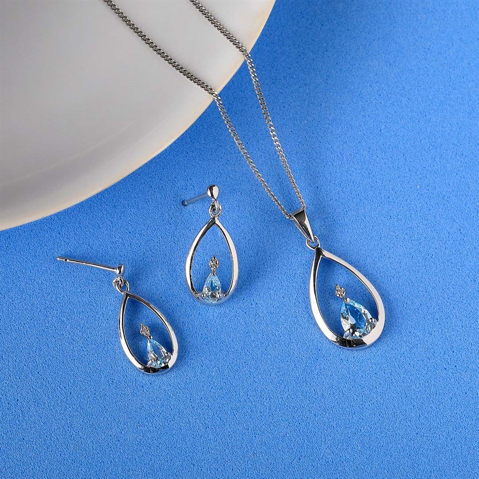 My Diamonds Silver Blue Topaz And Diamond Pendant And Chain - D9969