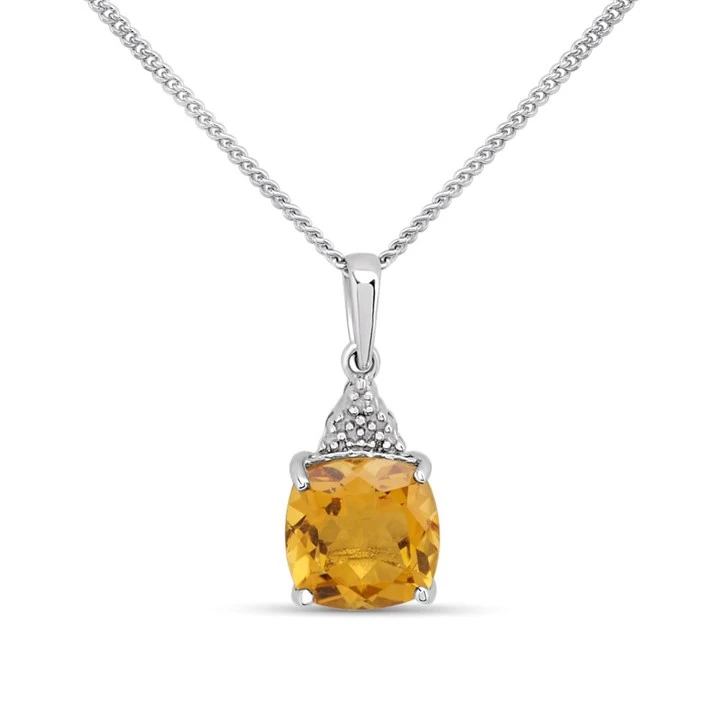 My Diamonds Silver Cushion Citrine And Diamond Necklace - D99232