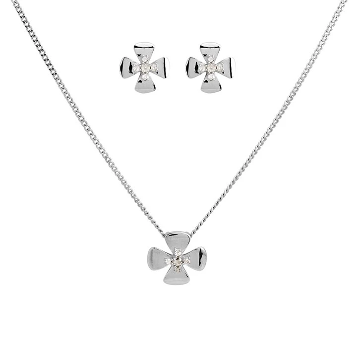 My Diamonds Silver Diamond Clover Necklace And Earrings Gift Set - D90138