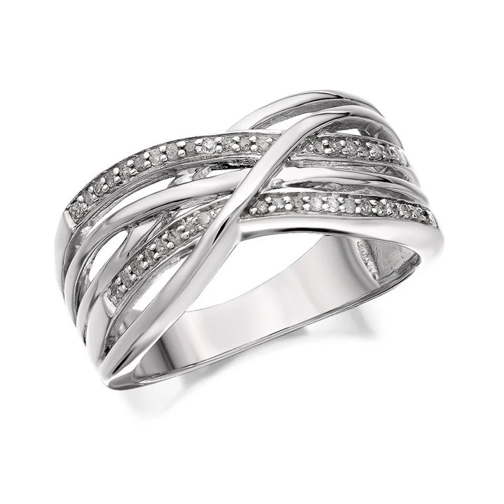 My Diamonds Silver Diamond Crossover Band Ring - 10pts - EXCLUSIVE - D9936