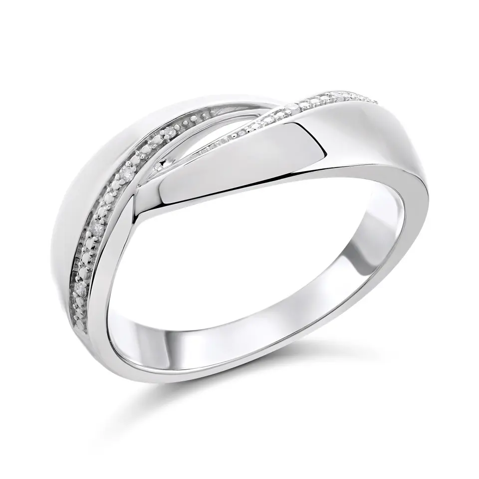 My Diamonds Silver Diamond Crossover Band Ring - d99146