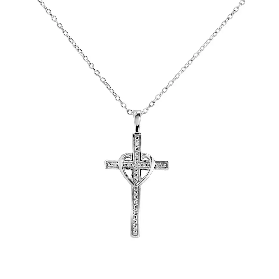 My Diamonds Silver Diamond Heart Cross And Chain - D99170