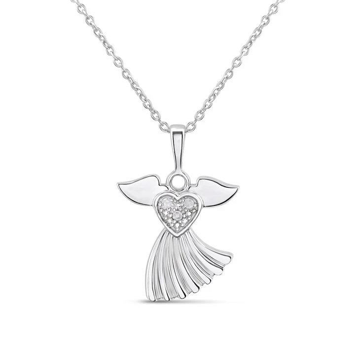 My Diamonds Silver Diamond-Set Angel Necklace - D99258