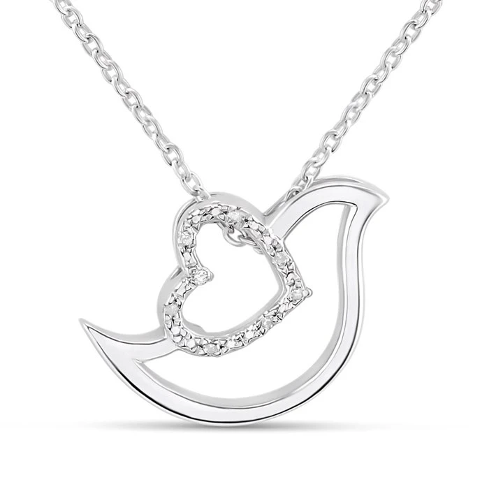 My Diamonds Silver Diamond-Set Bird And Heart Necklace - D99261