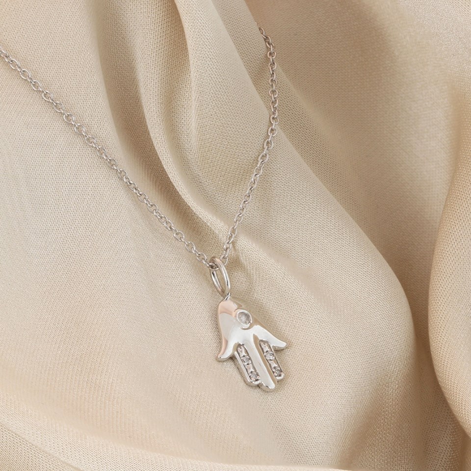 My Diamonds Silver Diamond-Set Hamsa Hand Necklace - D99303