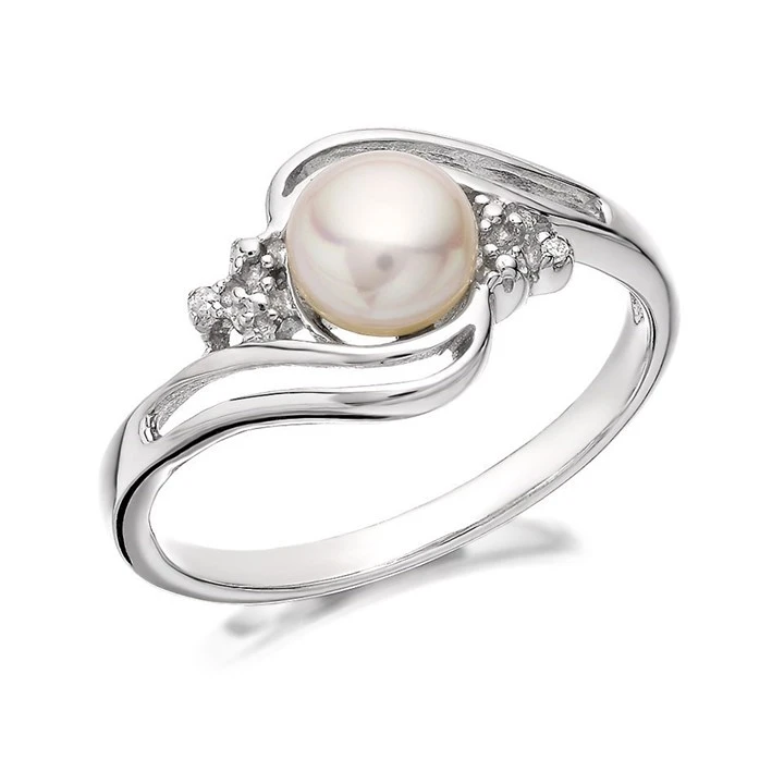 My Diamonds Silver Freshwater Pearl And Diamond Crossover Ring - D9054