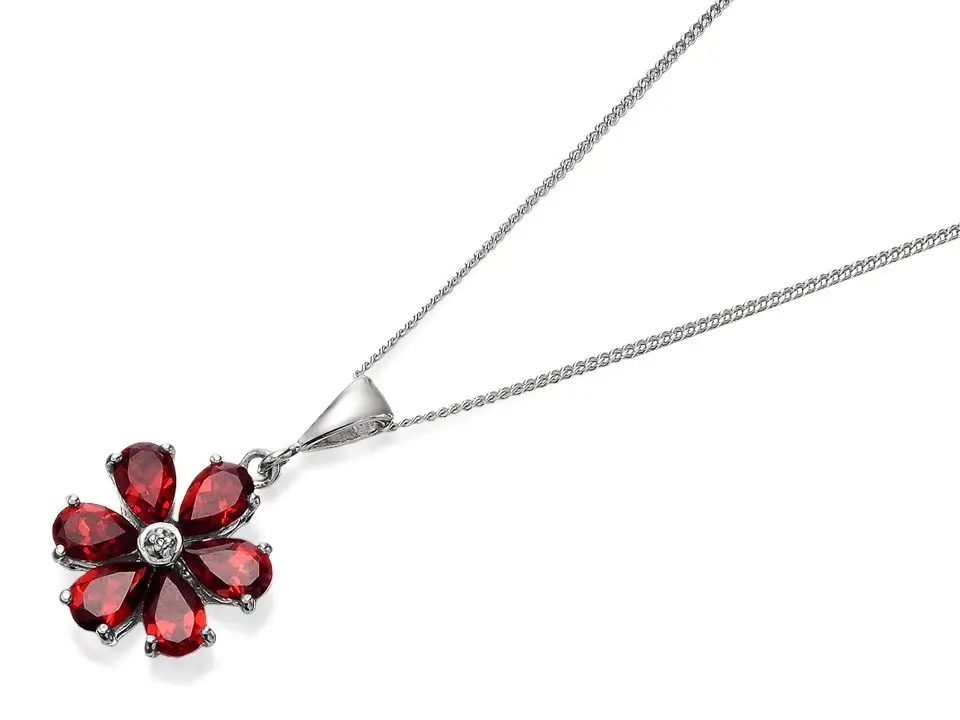 My Diamonds Silver Garnet And Diamond Flower Necklace - D9069