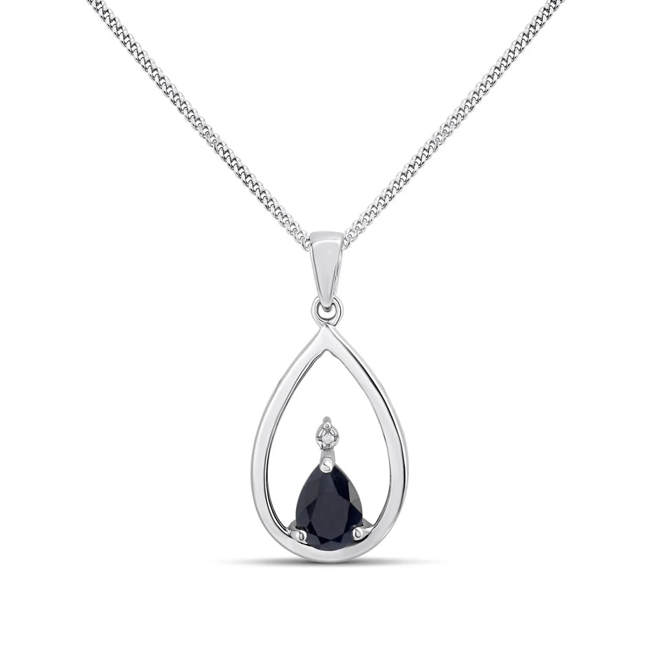 My Diamonds Silver Pear Sapphire And Diamond Necklace - D99296