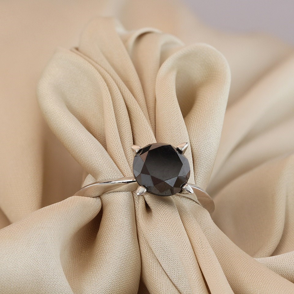 My Diamonds Silver Solitaire Black Diamond Ring, 3cts min - D99284