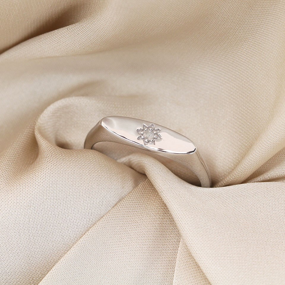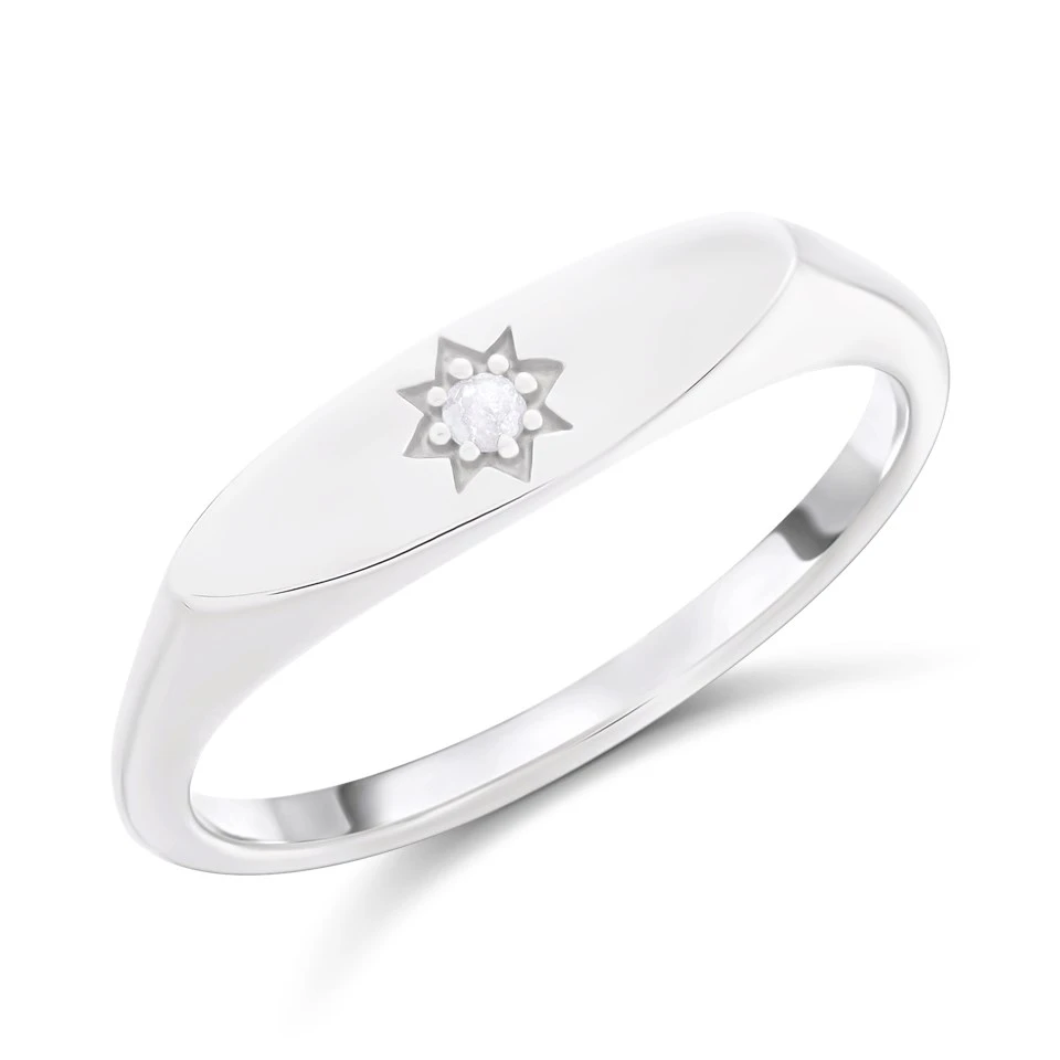 My Diamonds Silver Transverse Oval Diamond-Set Signet Ring - D99241